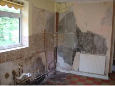 - Caved in ceilings in the bathroom with cracked glazing meant that both the kitchen and the bathroom had to replaced following a complete re-wire.