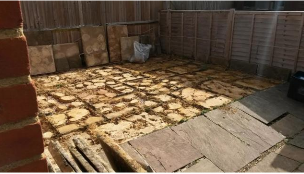 - Lift and re-lay existing slabs on top of compacted hardcore & mortar sub-base then point joints to finish.